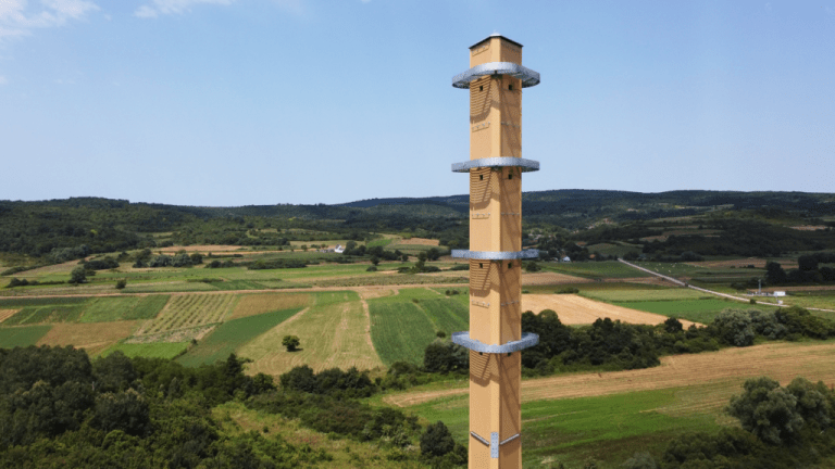 Kako naglašava izvršna direktorica Ecotelligenta, Gyöngyi Mátray, ovo je stup drvene strukture, a ne „drveni stup”, s obzirom na to da ima bazu od armiranog betona i čelične elemente.