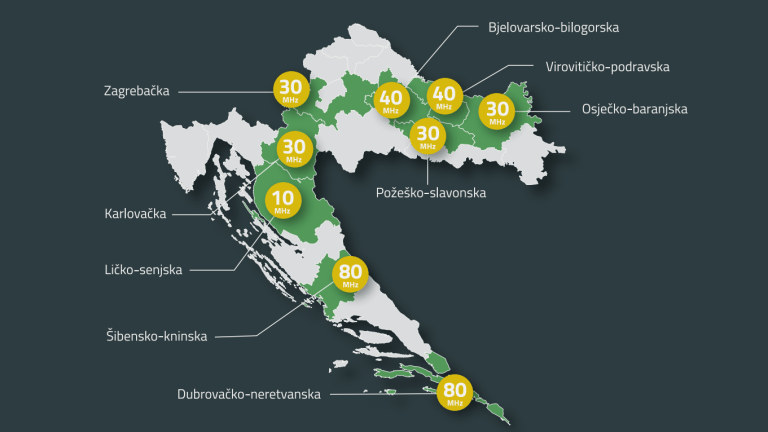 - Bjelovarsko-bilogorska (30+10 MHz)